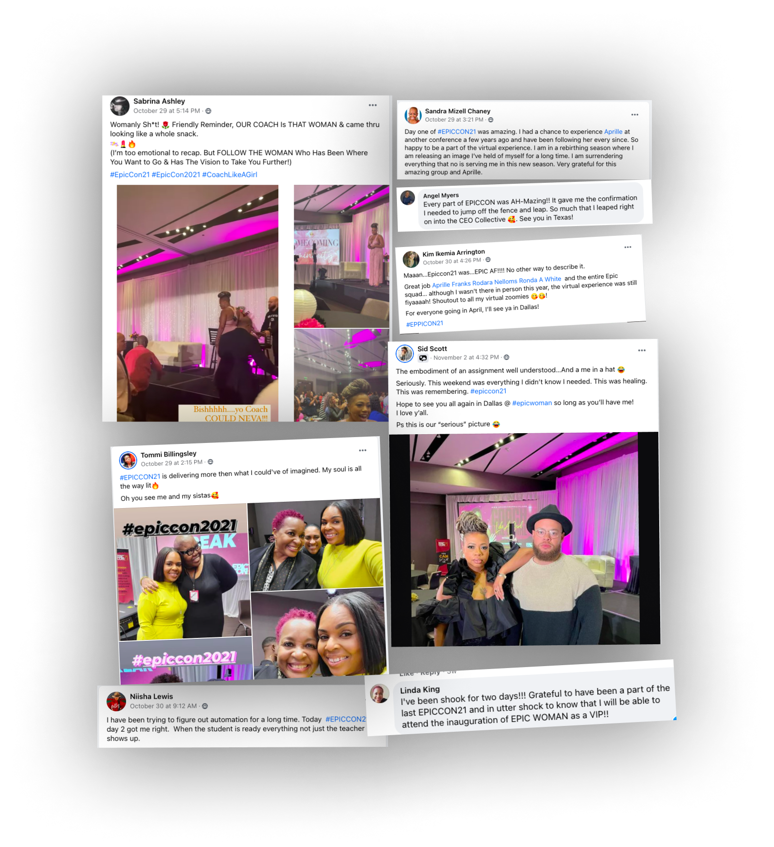 EPICWOMAN is a 3 day revival, rebirth and renewal of your mind, your heart, your soul AND your business.